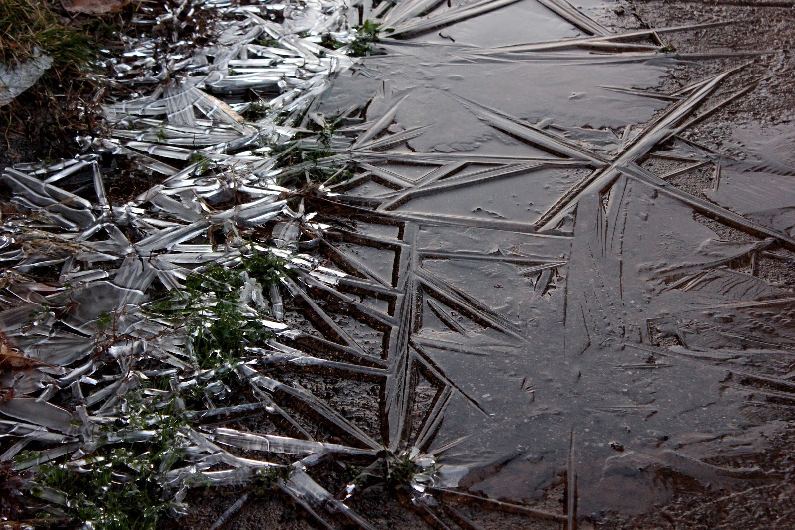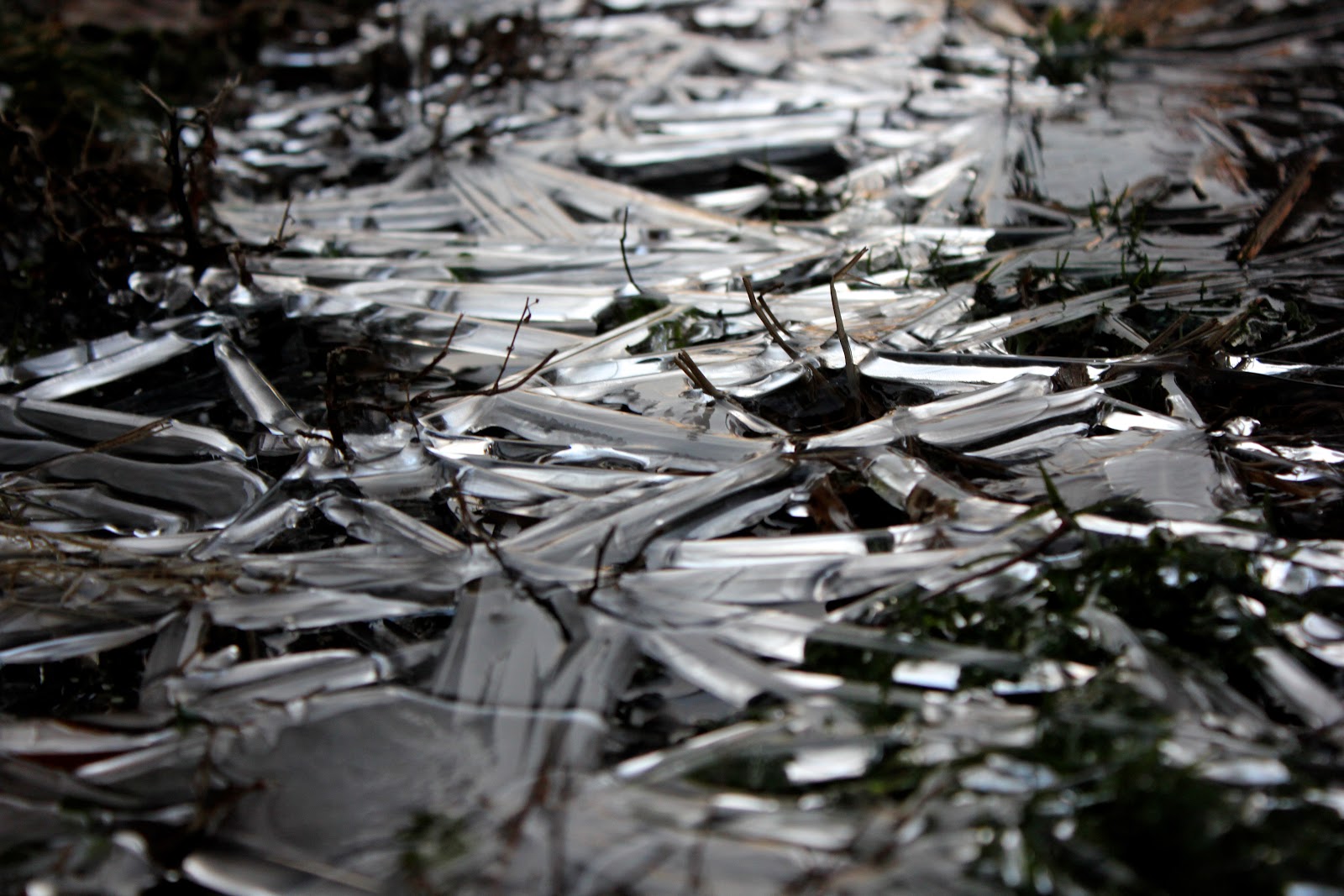 I came outside the other morning to walk the dog, and spotted this crazy pattern in the ice on my driveway. I guess there really is something positive that can come out of having a driveway with extremely poor drainage? What causes this, I have no idea... but I wish I could have had more time to just inspect and enjoy it while it was there. I guess that's what a camera is good for, huh? Now you get to enjoy it too. :)