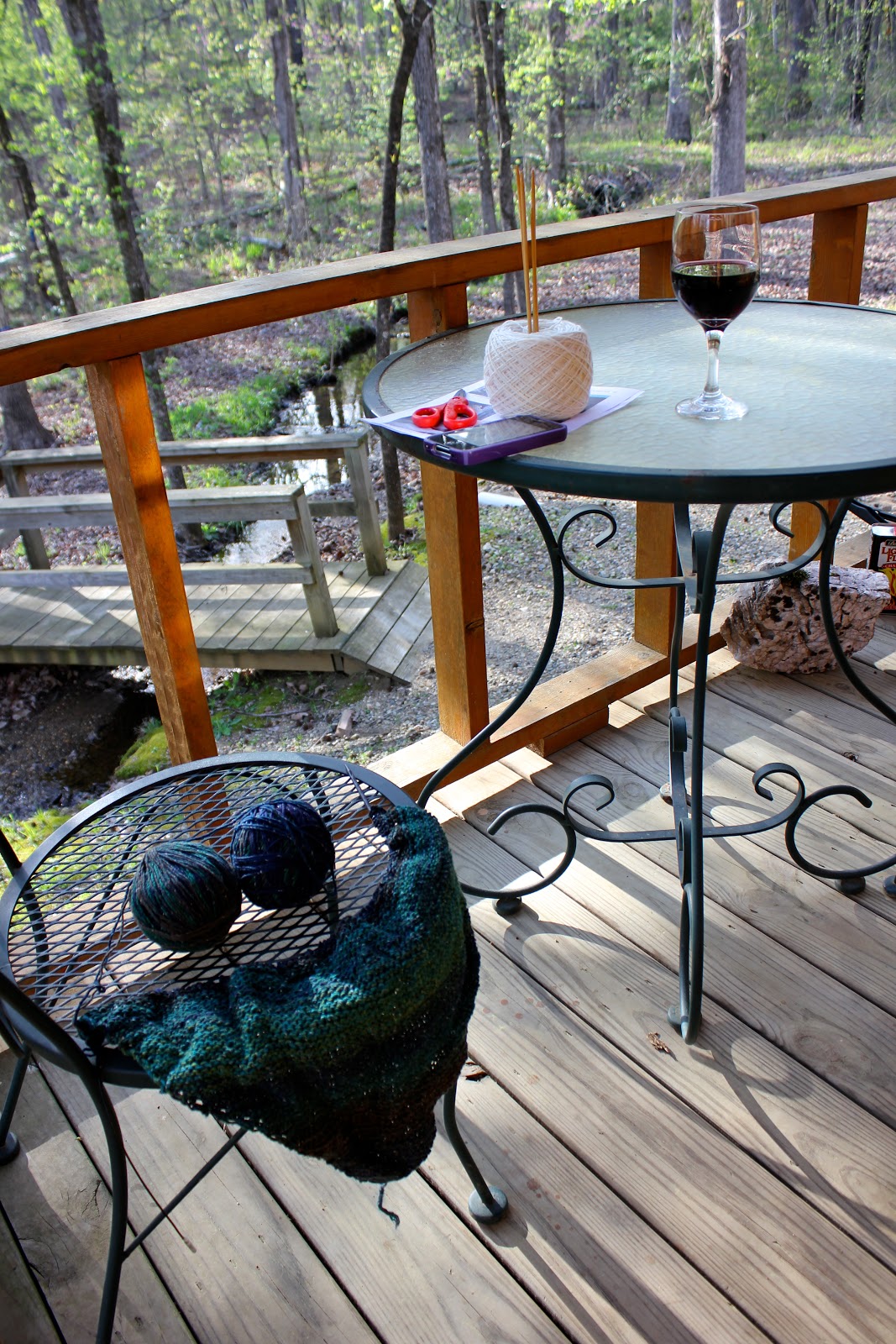 My LYS recently started a knit-along of the Lanesplitter skirt, which I was of course ecstatic to join in on despite my already never ending list of projects. Loops in Tulsa is one of my fave yarn stores in the state, and it's also probably one of the hippest yarn stores I've ever been to... right up there with Purl Soho. It's pretty great. Also, when I say "local" yarn store, I mean like 90 miles away local. And when I say "knit along", I mean that I'm following the Ravelry thread and staying in the "loop" that way (see what I did there?). So anyway, I haven't done any of their KAL's before and it seemed like a great opportunity to try out a type of garment I haven't knitted before... and here I am. My progress has been gradual... very gradual... but I got it out for just a little while on our cabin getaway this past weekend. And oh, the yarny, naturey bliss that was had by this fair cotton garment...