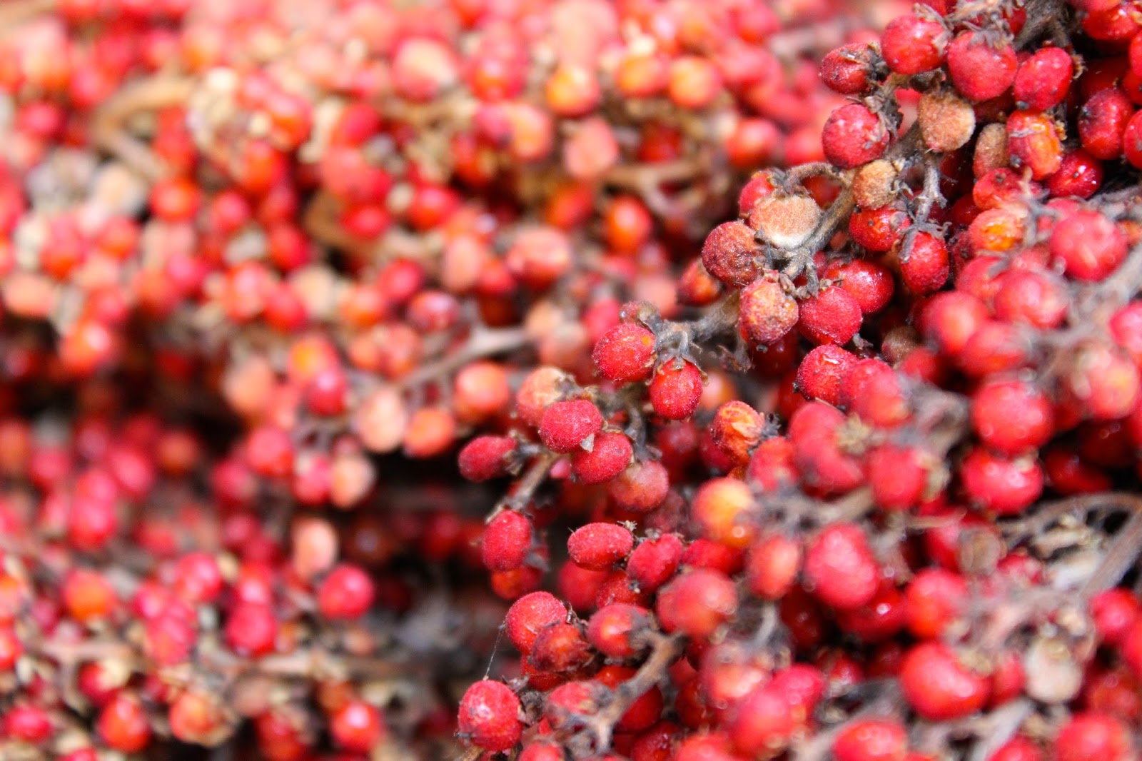 Smooth sumac is a common thicket-forming tree here in Oklahoma, usually found on the edge of prairie and disturbed sites such as roadsides. It's native, and pops up in these areas as a primary succession species to make way for the slower growing, more shade tolerant trees of our native forest type. In the fall, these trees really stand out because of the large clusters of bright red berries that form at the meristems. When I first tried out natural dyeing, I thought of these berries and how curious I was to see how they would work. Here we are in late summer, and I finally got my chance!