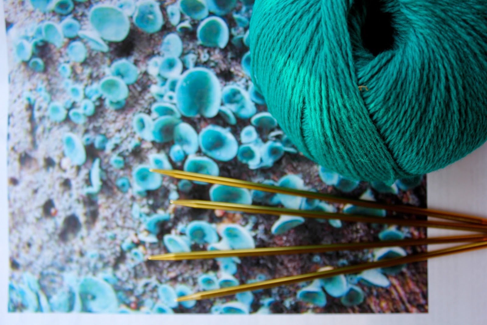 Another type of lichen to inspire my work recently has been pixie cup. I've knitted some pieces inspired by these for my shop, including terrariums, holiday ornaments, and a wall hanging.