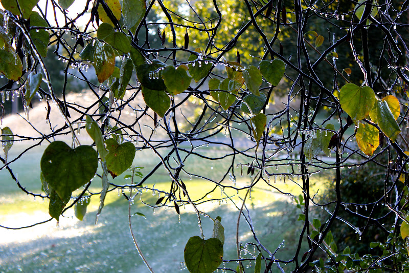 I came outside the other morning to walk the dog, and spotted this crazy pattern in the ice on my driveway. I guess there really is something positive that can come out of having a driveway with extremely poor drainage? What causes this, I have no idea... but I wish I could have had more time to just inspect and enjoy it while it was there. I guess that's what a camera is good for, huh? Now you get to enjoy it too. :)