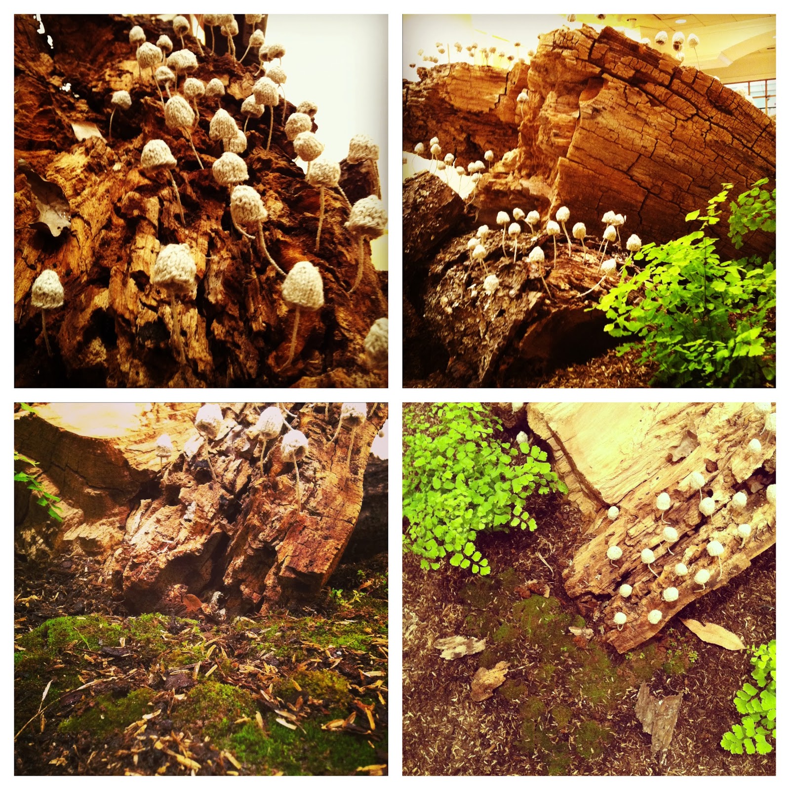 Aside from the enjoyment that came from nerding out over wood decay, moss, plants, and assembling all of my other materials, I think my favorite part of the exhibition was watching people observe my piece. While I avoided hovering nearby because it made me nervous, it was fantastic to see people crouching down to look at the knitted mushroom caps up close, and further inspecting the other components of the installation - the exact response that I was hoping for. I'm excited to continue on to the next phase (possibly two) of this series which will hopefully come to fruition in the next month or so (installation plans are already slated for April).