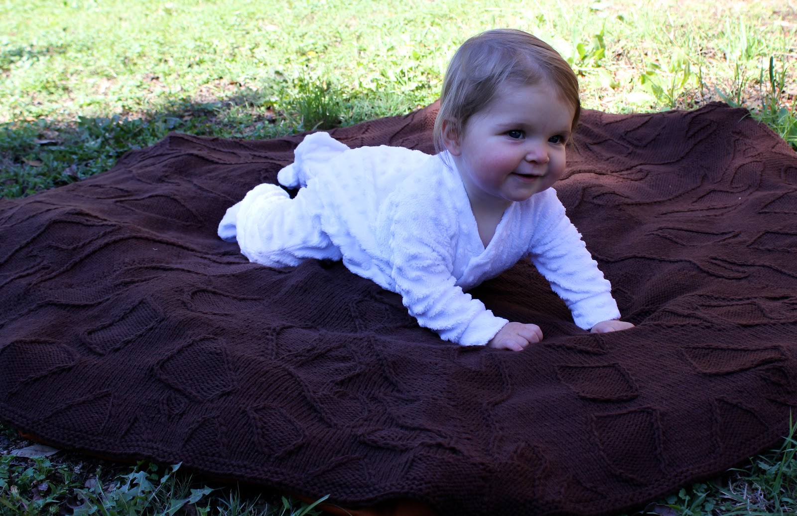 The blanket is made from Knit Picks Swish Worsted. It incorporates a chart of 6 identical sections knitted in the round. I plan to publish the pattern eventually, although it will require a little bit of tweaking. I am going to adapt it with 8 sections to make the growth rings a little rounder - they turned out a little too geometric.