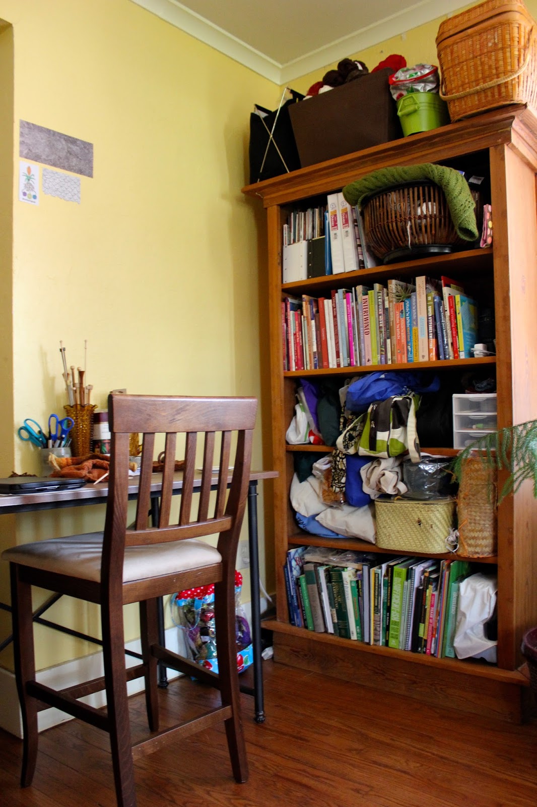 Photos: 1. dye jars with baldcypress leaves, eastern red cedar heart wood, and black walnut hulls 2. working with honeylocust leaves 3. knitting with seed of cottonwood